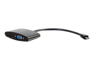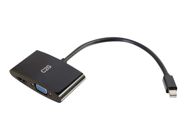 C2G 20cm Mini DisplayPort to HDMI or VGA Adapter Converter 4K UHD - Black - Video adapter - Mini DisplayPort hann til 15 pin D-Sub (DB-15), HDMI hunn - 20.3 cm - skjermet - svart - 4K-støtte