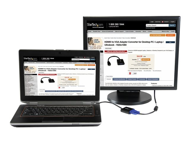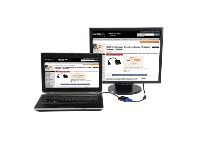 The HD2VGAE2 HDMI to VGA adapter allows you to connect an HDMI output from your laptop, ultrabook, or desktop computer onto a VGA monitor or projector, saving the cost of upgrading to an HDMI compatible display. Intended for outputting user generated content such as presentations, and work documents, the HDMI to VGA converter can also work to increase your productivity by extending your computer's desktop onto a secondary monitor, doubling available workspace.