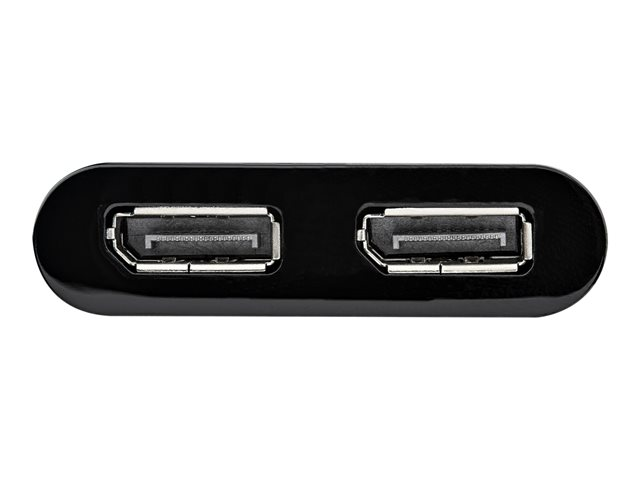 - Connects two DisplayPort monitors simultaneously for multitasking