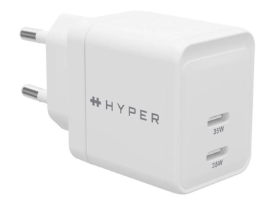 HyperJuice - Strømadapter - GaN - 35 watt - QC 3.0, Power Delivery 3.0 + PPS - 2 utgangskontakter (USB-C) - hvit - Europa