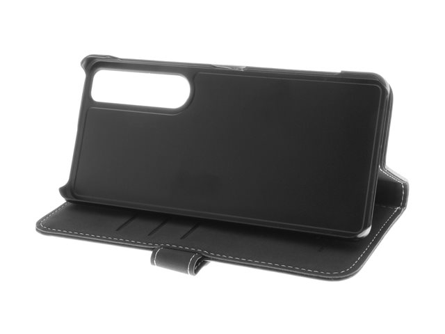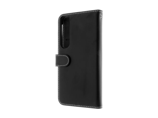 Insmat Exclusive Flip Case - Lommebok for mobiltelefon - ekte skinn, kartong+papir, polykarbonat, bomullssting - svart - for Sony XPERIA 1 VI