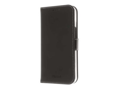 Insmat Exclusive - Lommebok for mobiltelefon - ekte skinn, polykarbonat, bomullssting, kartong+papir - svart - for Apple iPhone 14 Plus 650-3105