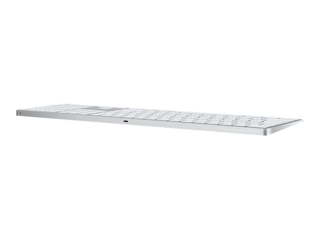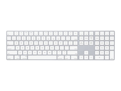 Magic Keyboard med numerisk tastatur har en utvidet layout med dokumentnavigasjonskontroller for rask rulling og piltaster i full størrelse for spilling. En saksemekanisme under hver tast gir økt stabilitet, mens optimalisert tastevandring og lav profil gir en komfortabel og presis skriveopplevelse. Det numeriske tastaturet egner seg også ypperlig til regneark og økonomiprogrammer. Og det innebygde, oppladbare batteriet har en utrolig lang levetid, slik at du kan bruke tastaturet i omtrent en måned eller mer mellom hver lading.