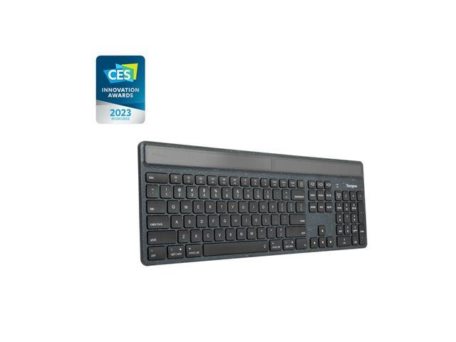Targus EcoSmart - Tastatur - bærekraftig energiutvinning - bakteriedrepende middel - bakgrunnsbelyst - trådløs - Bluetooth 5.0 - QWERTY - Nordisk - tastsvitsj: Scissor-Key - svart - recycled packaging