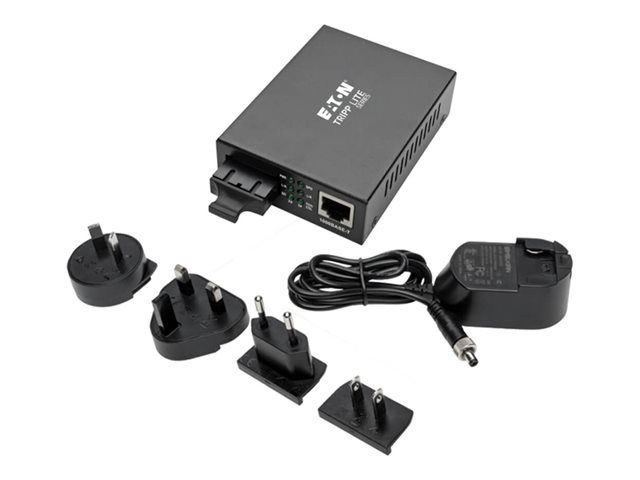 Eaton Tripp Lite Series Gigabit Multimode Fiber to Ethernet Media Converter, 10/100/1000 SC, International Power Supply, 850 nm, 550 m (1,804 ft.) - Fibermedieomformer - 1GbE - 10Base-T, 100Base-TX, 1000Base-T - RJ-45 / SC flermodus - opp til 550 m - 850 nm