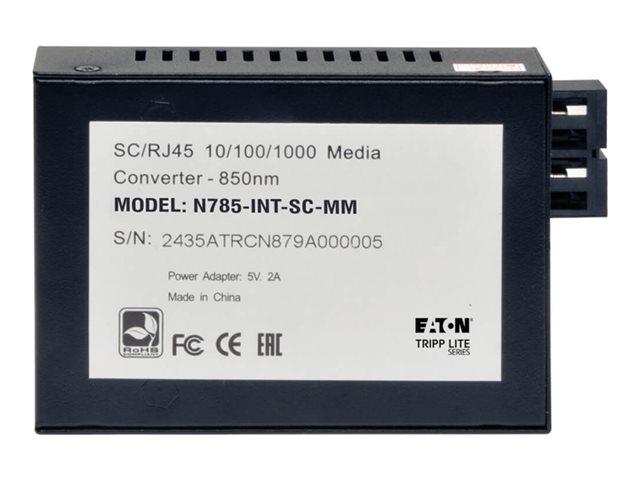 Eaton Tripp Lite Series Gigabit Multimode Fiber to Ethernet Media Converter, 10/100/1000 SC, International Power Supply, 850 nm, 550 m (1,804 ft.) - Fibermedieomformer - 1GbE - 10Base-T, 100Base-TX, 1000Base-T - RJ-45 / SC flermodus - opp til 550 m - 850 nm N785-INT-SC-MM