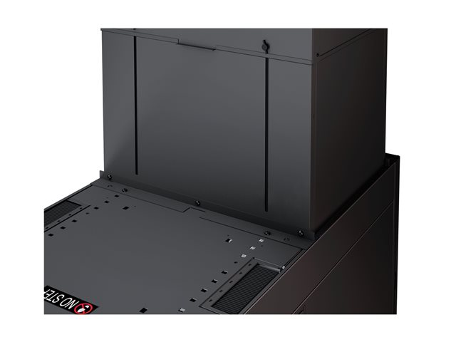 Vertical Exhaust Duct (VED) system for NetShelter SX is a low cost easy to install solution that mounts to the top rear of NetShelter enclosures to capture and return hot exhaust air to room cooling systems.