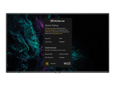 | Egenskaper | Frame Rate Control (FRC), 8-bitsstøtte, Raspberry Pi Compute Module 4 Compatible, Smart Display Module-spor, Intel SDM Ready, strømdrevet USB-port, Removeable Logo Ornament, ARC Support via HDMI, AMX NetLinx support, ASCII Control Commands, Crestron Roomview support, PJLink, Scheduler, automatiske epost-alarmer, NaViSet Administrator 2, Display Browser Control, Consumer Electronics Control (CEC), sikkerhetslåsspor (kabellås segles separat) |