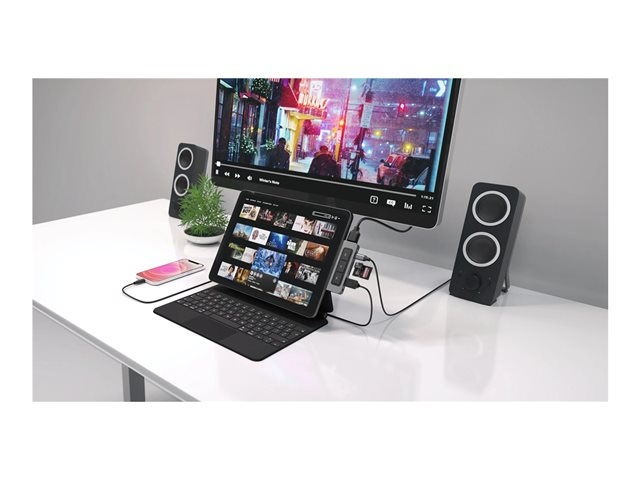 Seamlessly transform your USB-C iPad Pro, Air or mini into a powerhouse workspace with a 4K 60Hz HDMI video port, USB-C 5Gbps 60W Power Delivery port, MicroSD/SD slots, a USB-A 5Gbps port as well as a 3.5mm audio jack for headphones.