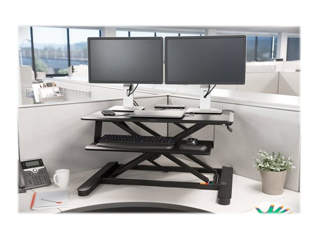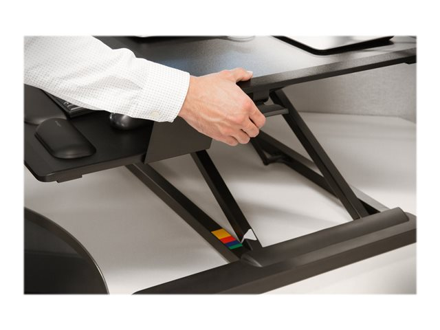 Incorporating Kensington's patented technology to ensure proper fit, the SmartFit Sit/Stand Desk provides an efficient and safe way to convert your desk into a healthy sit-stand workstation using a convenient desk-on-desk design. Strong and stable at any height, while using a pneumatic lift to effortlessly raise and lower your workspace within a space-saving footprint, the Kensington SmartFit Sit/Stand Desk delivers optimal productivity and ergonomic support.